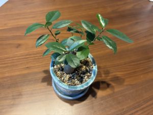そう思い立ち、観葉植物のお店に出向いて一目ぼれしたこの子。名はガジュマル。